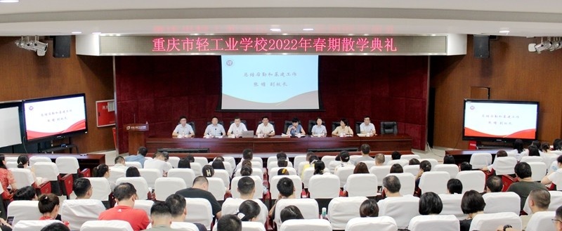 7月9日,重庆市轻工业学校2022年春期散学典礼在多功能厅召开,全校教职工参会。行政办公室主任吕正伟主持大会。